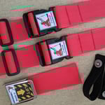 Red webbing stands out easily against most water clothing, and the yellow grab loop stands out for emergency release. The webbing is made from 50mm polypropelene. Ladderlock buckles have combined break strength of 180kgs. The quick release is now stainless steel.(see 4th photograph).