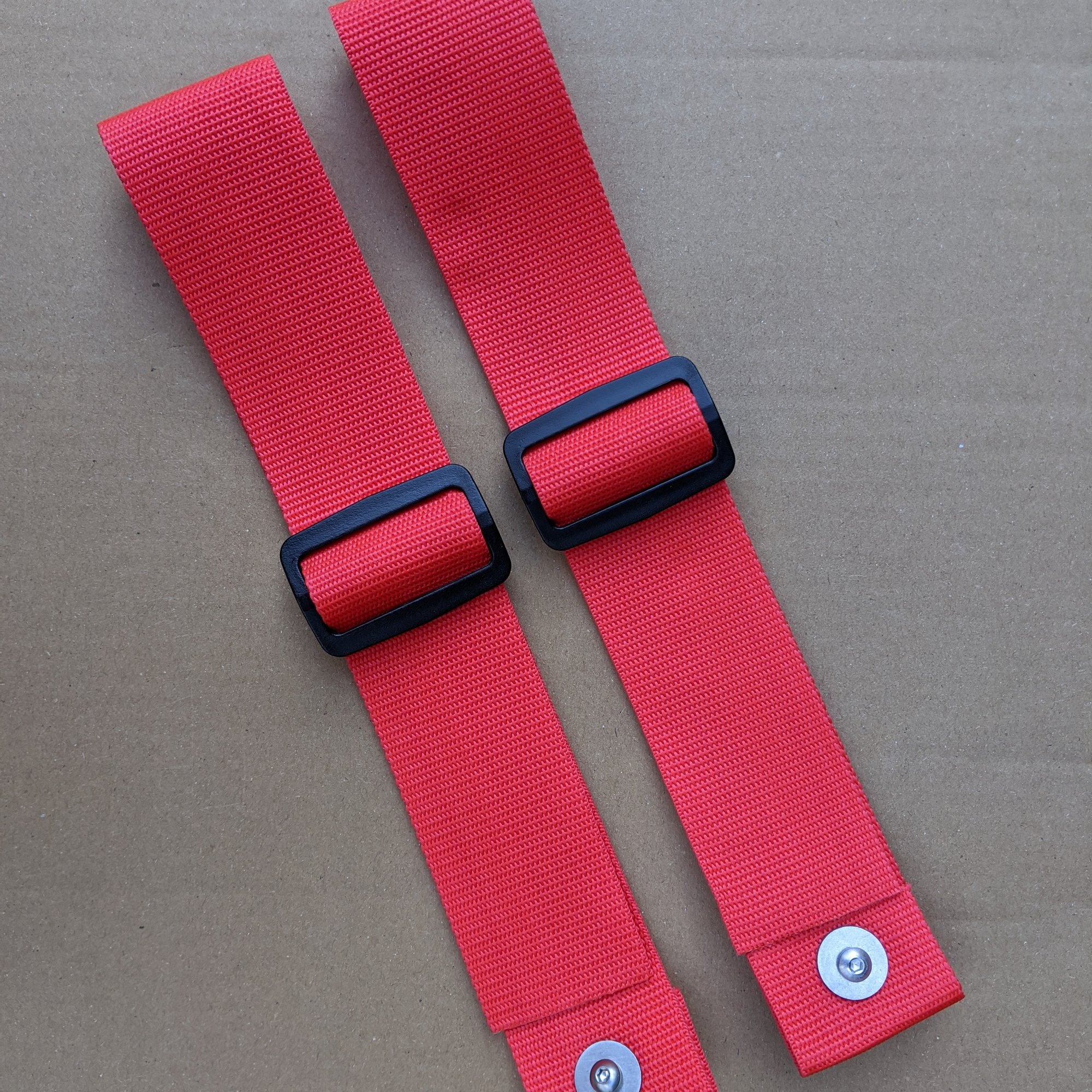 One pair of lower knee straps to fit between the hull and the saddle. Knee straps give Extra control and keep your knees down when rolling the boat. These could be used al little higher up the thigh, like a bulkhead with the added bonus that they are easily adjustable for summer or winter clothing.